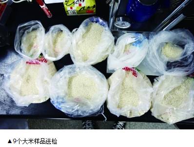 樣品來源:共9份樣品,7份是記者從4個小攤購買的樣品,還是兩份檢測工作人員自家購買的正食用的“新米”